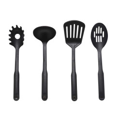 - 4 ustensiles silicone professionnels : spatule, louche, cuillère pâtes, cuillère passoire
