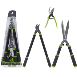 Set 3 outils de jardin professionnel : cisaille aluminium 20cm + cisaille-haie 52cm + sécateur 60cm